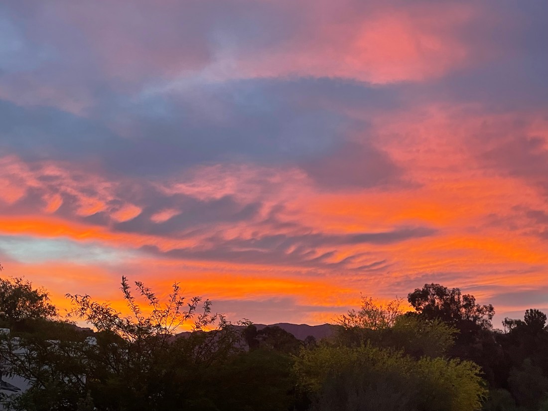 April 2022’s view is taken looking east from our site at Boyce Thompson Arboretum, as the sunrises on April 19th, I had to hustle out in my pajamas to capture this shot, good thing most of our neighbours sleep later than I do, so I didn’t have to share this beauty with anyone else, at least that I knew of.