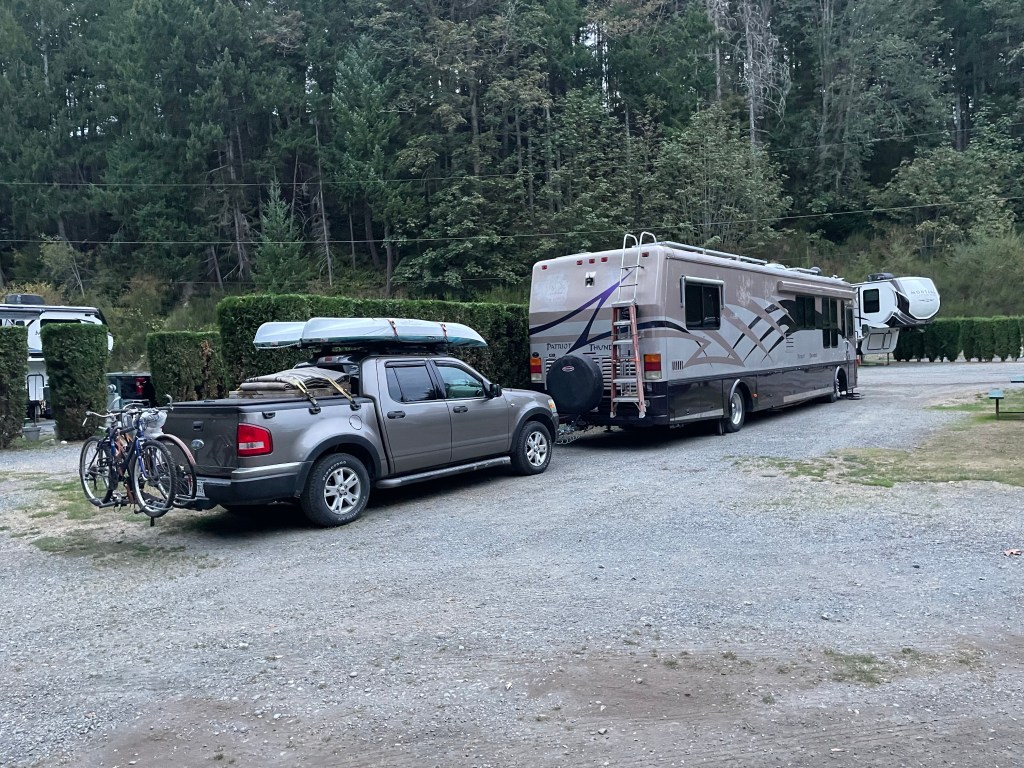 Well lets just say, our day did not unfold as we had hoped or expected. And because this is really the start of our vacation I have decided to to keep it positive so all I will say is that we actually did not hit the road at near 6:30. This was going to mean at least an hour of night driving, our first night driving since November 2017, it’s just not something we do, we like to see the sights and scenery while we travel. And if I have said it once I must have said it a hundred times “NO campgrounds after dark” & “NO driving the coach after dark” so I just broke a couple of our main rules today. But I didn’t want to loose another day of our vacation, after all we only have three months of vacation but only three days in Campbell River!