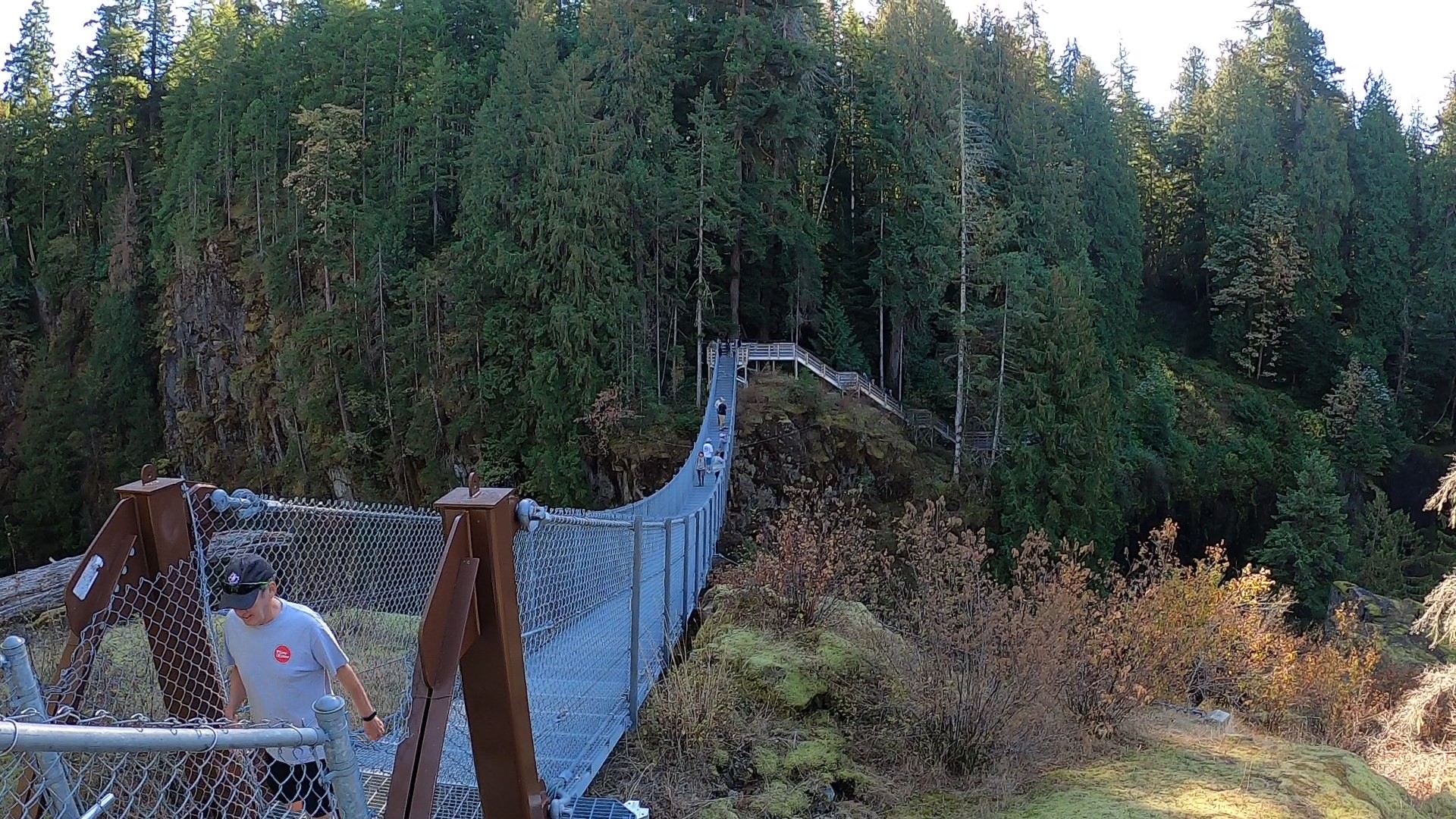 The weather today is another bonus day with a forecast high today of 26ºC (79ºF) with lots of sunshine, there is a breeze today, so we defenaly picked the correct day to go kayaking, the breeze will be fine for hiking. So todays adventure will be to Elk Falls Provincial Park, where there is a suspension bridge over the Campbell River, as well as a waterfall. And as we are camping almost at the mouth of the Campbell River our adventure today is only a few kilometers up the road.