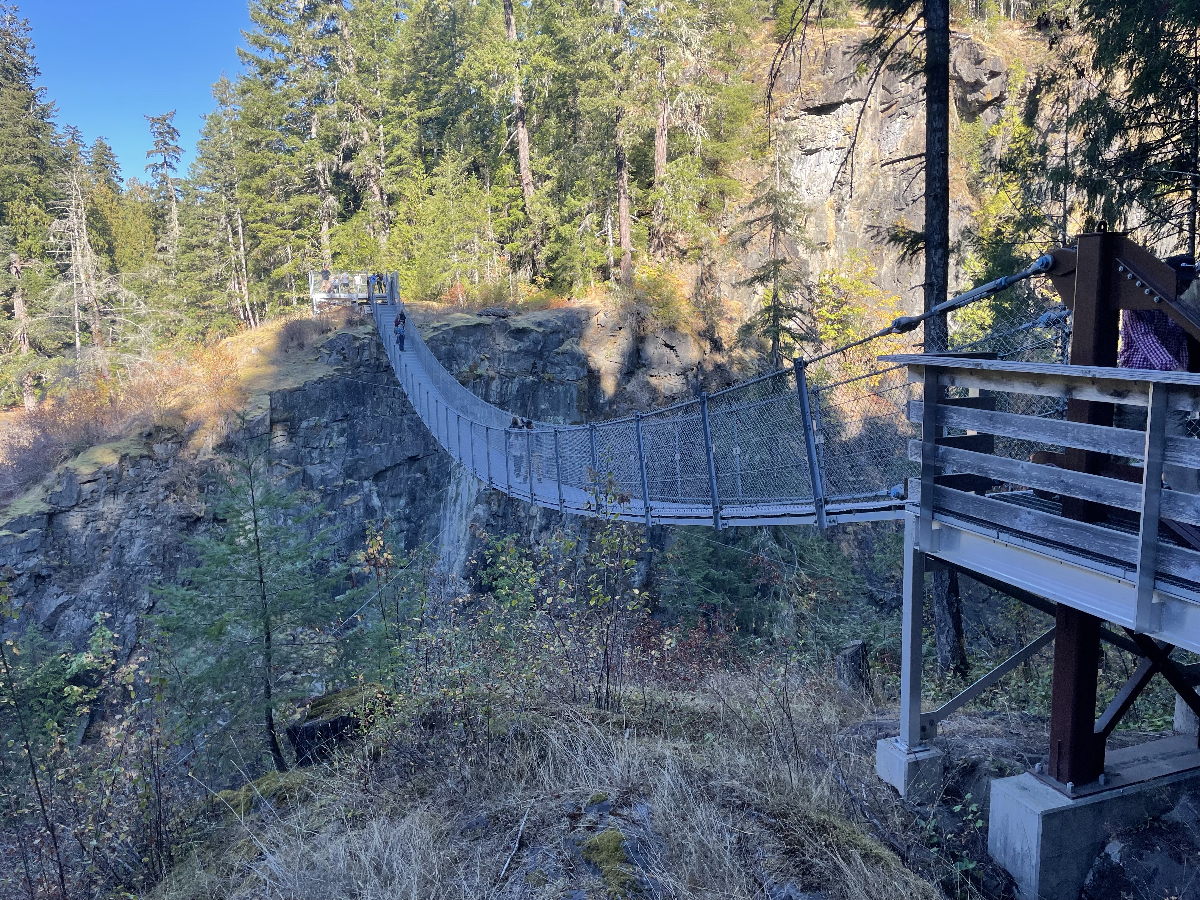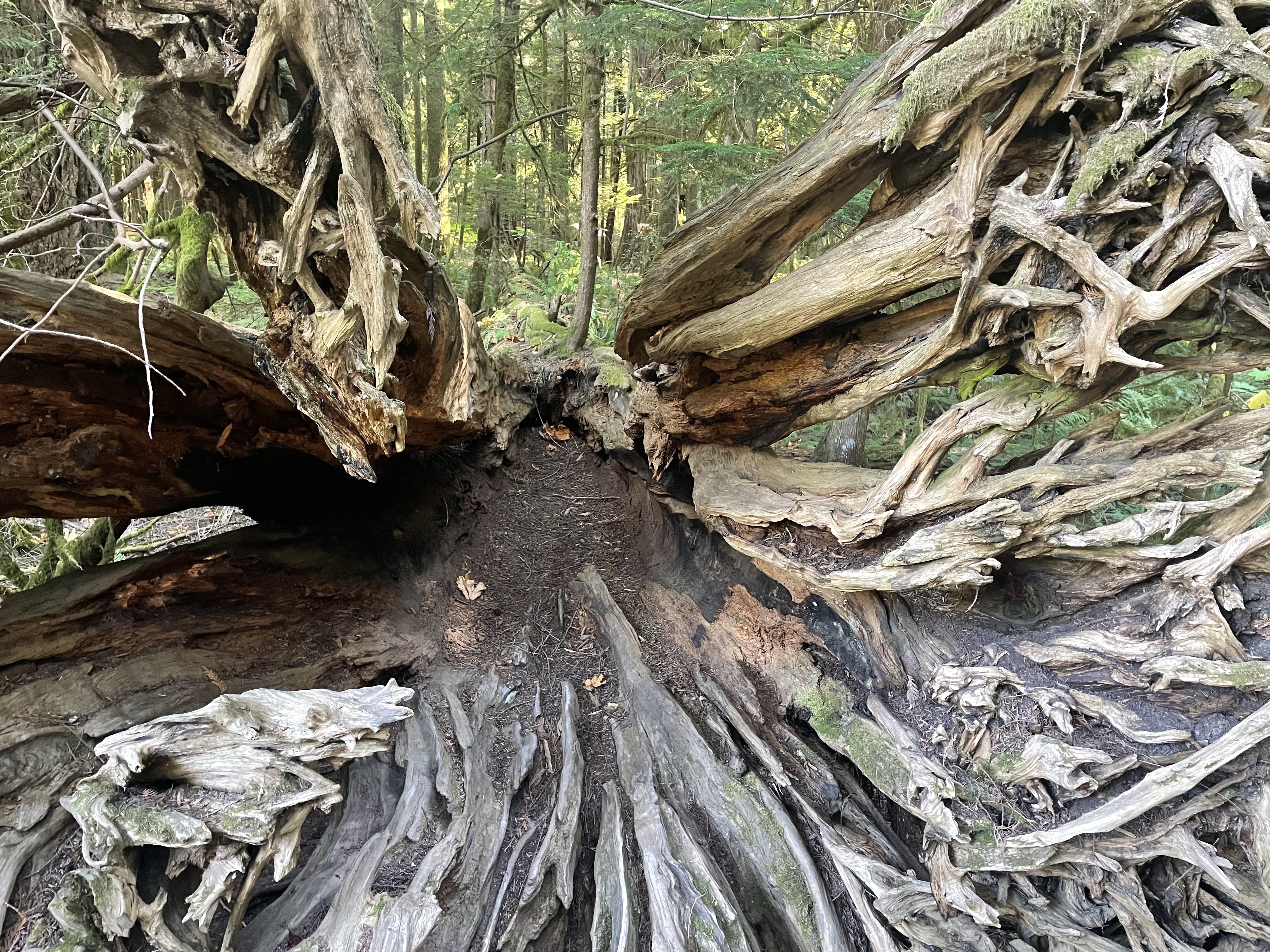 We loaded up and headed to the park, to find a large parking lot with numerous vehicles, the disadvantage to weekend adventures. There are a number of hikes in the area, but we we just picking the bridge and falls adventure. Only 1.1 miles according to my alltrails app, rated at moderate, I think the only reason for the moderate rating was the number of stair steps at the falls area, but an amazing hike through old growth forest. Could explain all the photos of trees that I ended up with, it was too peopled to be real enjoyable but was worth the time.