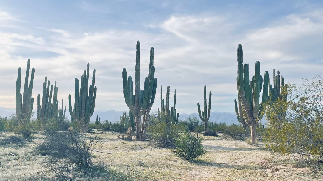 The stars of the valley are the Cardón cactus (Pachycereus pringlei), the largest cactus species on Earth.