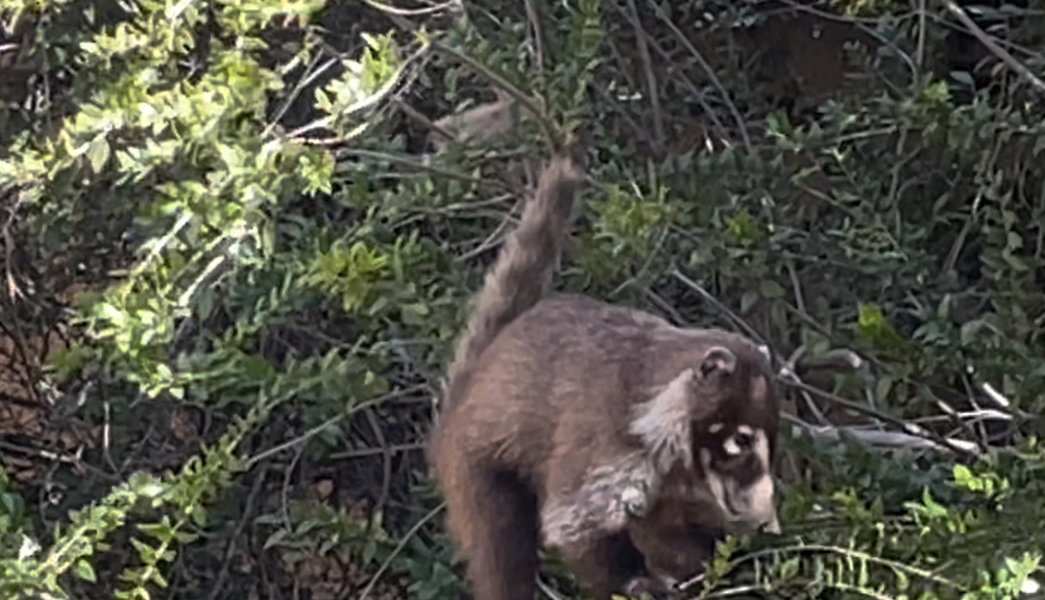 Today we ventured into the Arboretum to get another look at the coati which are still feeding in the Arboretum’s canyon, we have mixed feelings on the wildlife being in the garden as many new people are flocking to the garden to see the coati, but they are doing so much damage to the garden that it may be time for them to move on. The first photo was an adult while the second shows a couple of the baby coati.
