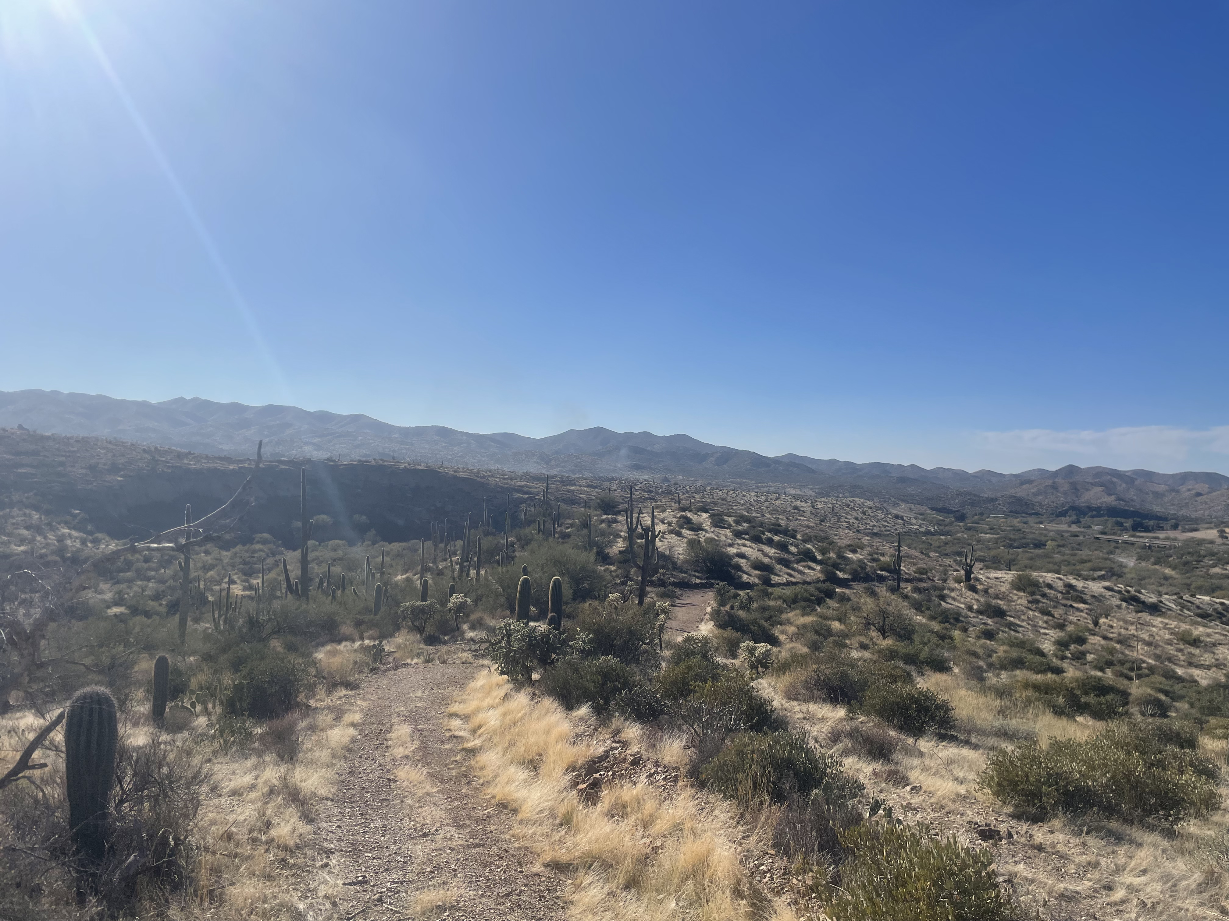And after our venture in the Arboretum Miss Laurie headed off to the creek bed to do a little rock hounding but she got a couple of photos as she headed off on her adventure as well. Views of the Arizona desert at 2400 feet, and the moon over a huge saguaro cactus.